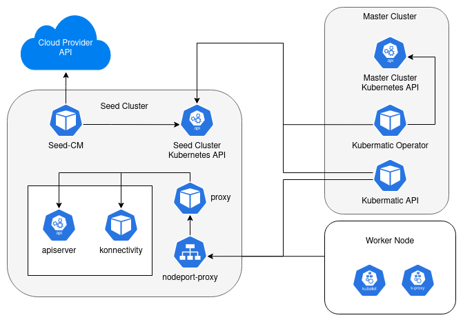KKP will create then a secure GRPC tunnel via Kubernetes Konnectivity proxy between worker and control plan, so no way back connection needs to be opened